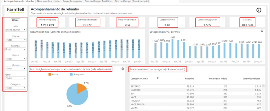 Verifica la eficiencia de la operación, plataforma de análisis de datos, evolución del rebaño en tiempo real.