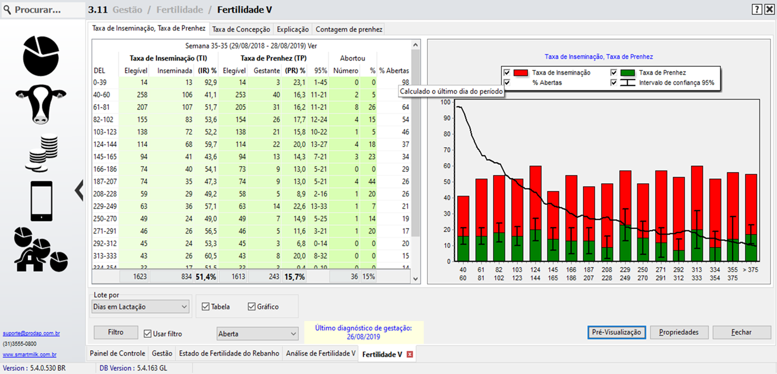 Análisis completo de la fertilidad de todo el rebaño, previsión de partos, problemas relacionados con la fertilidad, tasas de concepción, gestación e inseminación, intervalo entre partos, análisis de abortos, edad al primer parto.